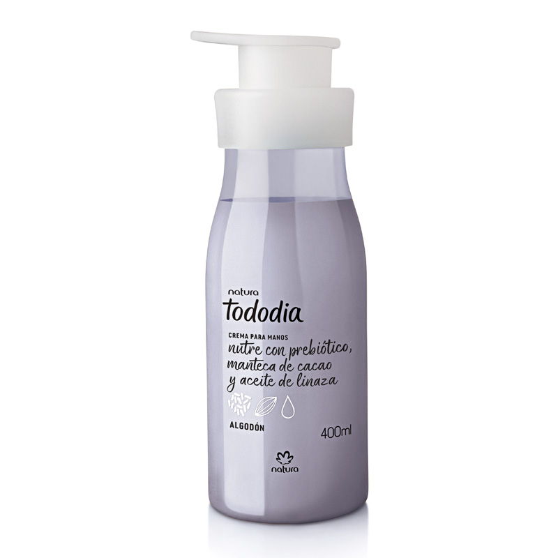 - Crema Corporal: Siente la nutrición profunda de las cremas corporales Natura Tododia en tu piel. Siente tu cuerpo con la Crema Tododia de Natura algodón. Una combinación equilibrada de ingredientes naturales con nutrición prebiótica, que se adapta a lo que tu piel necesita cada día. Por lo tanto, esta crema es adecuada para todo tipo de piel.